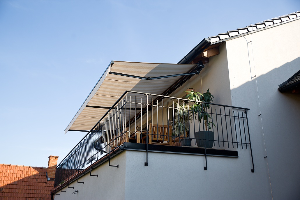 - Markýza je částečně krytá kazetou, což se hodí hlavně během nepříznivého počasí → ochrání to látku a prodlouží životnost.