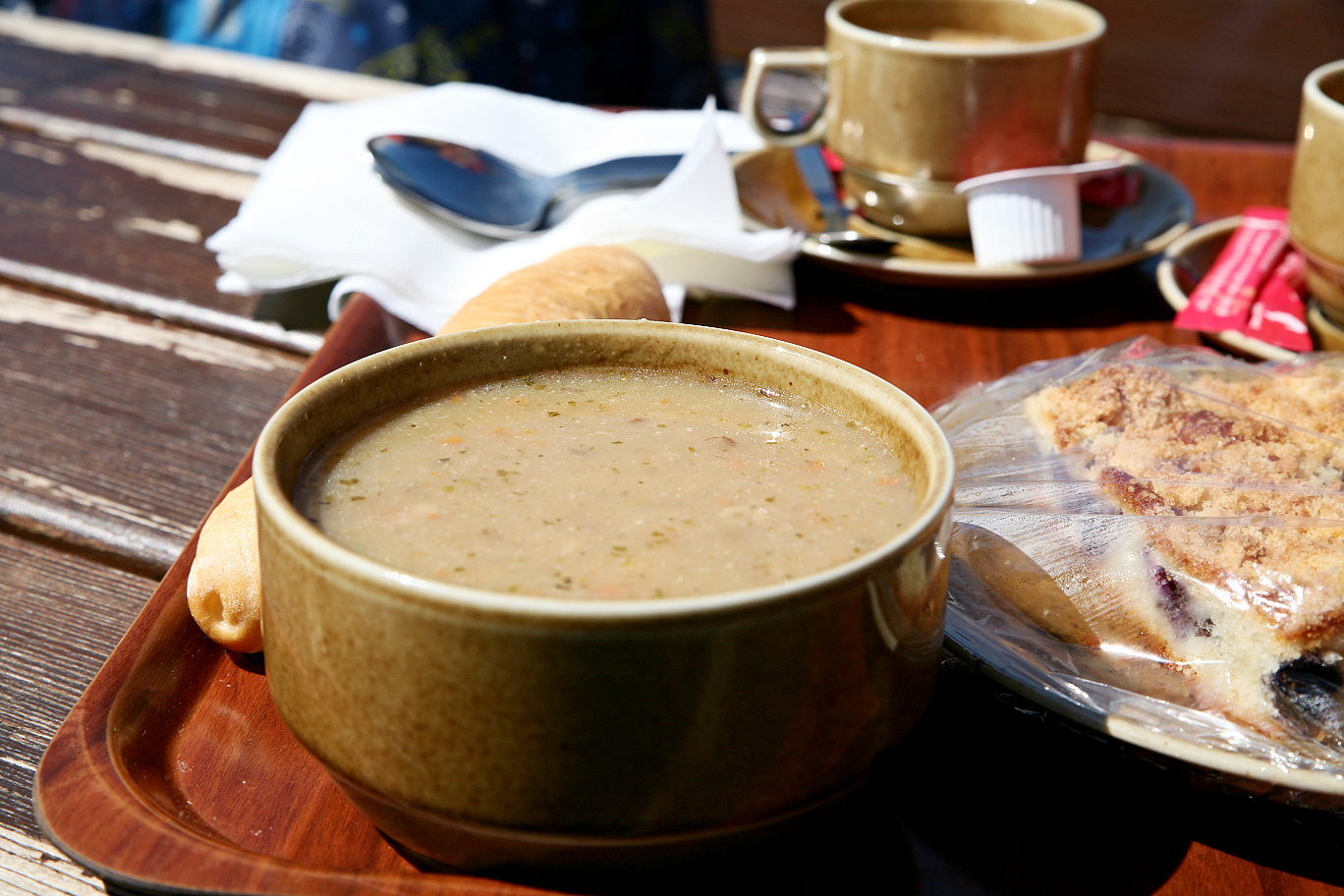Nejhorší situace nastala během červencových svátků, kdy se na Dolní Moravu sjely davy lidí a najít místo v restauraci byl naprostý boj. My zrovna vyjeli k přehradě Pastviny, takže pokus najíst se začal tam, pokračoval přes okolní vesnice a skončil po xy kilometrech zpět na Terezce v pizzerii. Na vesnicích restaurace nejsou, když už nějaká byla, tak bylo narváno nebo nám oznámili, že ať si klidně sedneme, ale že dřív jak za hodinu to vařit nezačnou. V některých podnicích byli dokonce krapet nepříjemní.