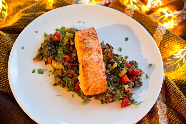 Čočkový salát s lososem