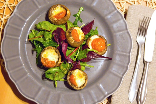 Zapečené žampiony s mozzarellou a cherry rajčátky