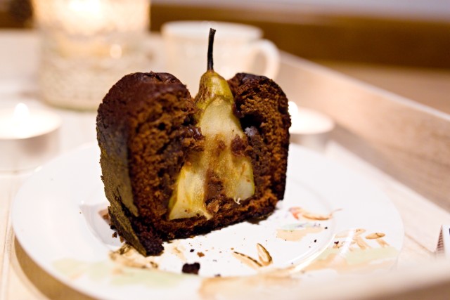 Čokoládový koláč s hruškami