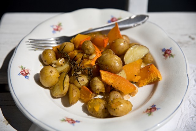 Pečená dýně Hokaido s bramborami