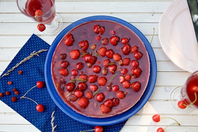 Bylo teplo. Veliké teplo. Petr měl svátek (i když tento svátek prý neslaví), a tak jsem si řekla, že upeču nějaký ten ovocný koláč. Mrkla jsem do lednice a nějak moc tam toho zrovna nebylo. Ale koukala tam na mě ricotta a věděla jsem, že už dozrávají třešně a na záhonku seženu pár jahod. Cestou… Číst dále…