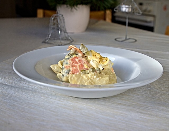 Ingredience jsou uvedeny na 1 porci Postup: Brambory uvaříme doměkka ve slupce. Mrkev oškrábeme, nakrájíme na tenká kolečka (nebo na drobné kostky, pokud chceme celý salát krájet na drobnější kousky) a také ji necháme uvařit. Vejce uvaříme natvrdo. Záleží, zda máme radši větší kousky – pak krájíme na měsíčky nebo menší kousky – pak krájíme… Číst dále…